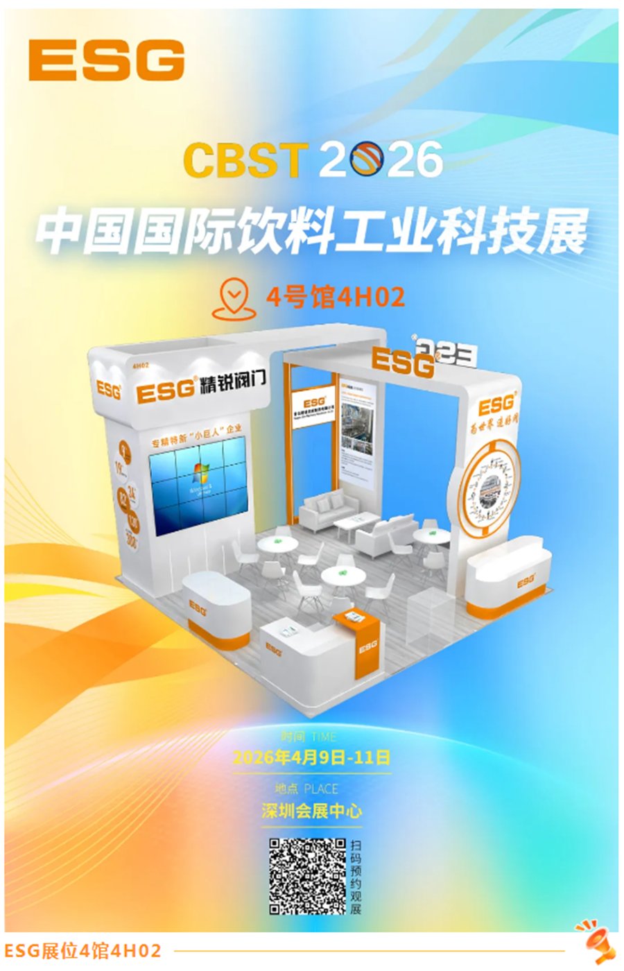From April 9th to 11th, 2026, the 14th China International Beverage Industry Technology Exhibition (CBST2026) will be grandly held at the Shenzhen Convention and Exhibition Center. As a leader in fluid process control system solutions, ESG Valve will showcase its full range of products and innovative technologies specifically designed for the beverage industry at booth 4H02 in Hall 4. We look forward to your visit!