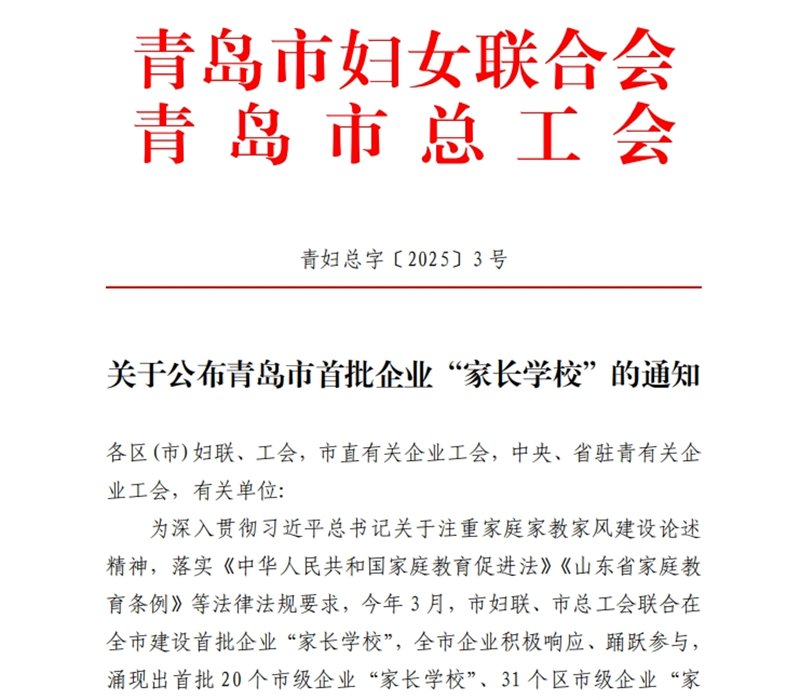 Recently, Qingdao Elite Machinery Manufacturing Co., Ltd. (hereinafter referred to as "ESG") was awarded the title of "Parent School" by the first batch of enterprises in Qingdao. This honor, jointly awarded by the Qingdao Women's Federation and the Qingdao Federation of Trade Unions, is not only an affirmation of ESG's long-term commitment to the cause of family-family education-family style construction, but also an encouragement and impetus for the company to further promote the concept of family education and lead social trends.